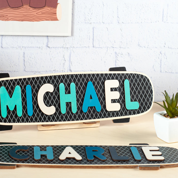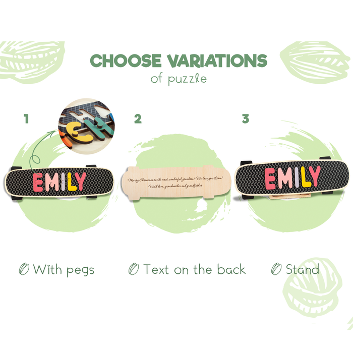 Skateboard Baby Name Personalized Puzzle, Wooden Montessori Puzzle, 1st Birthday Gift