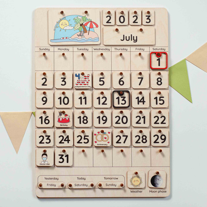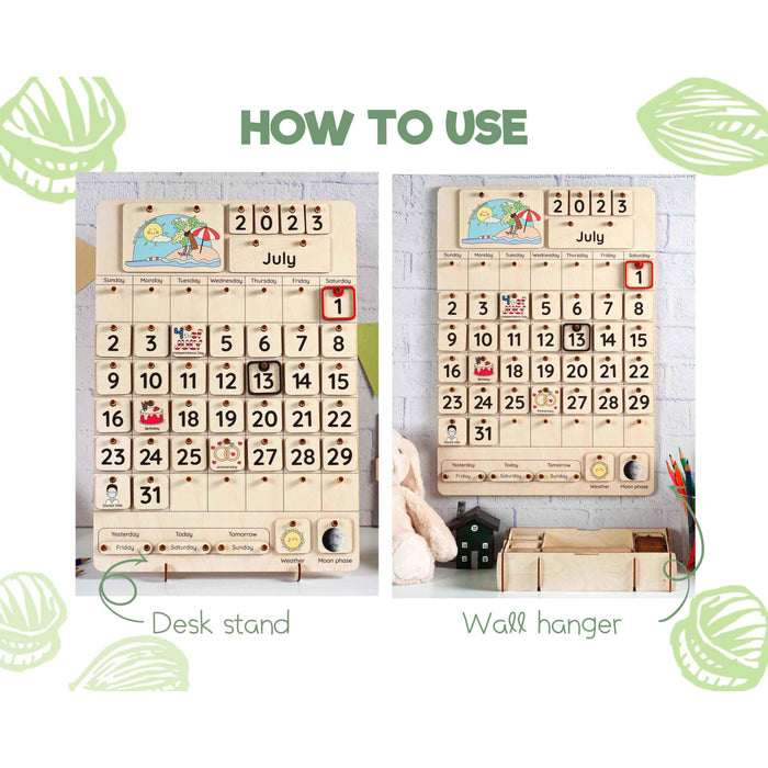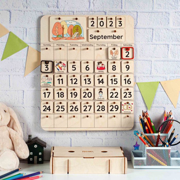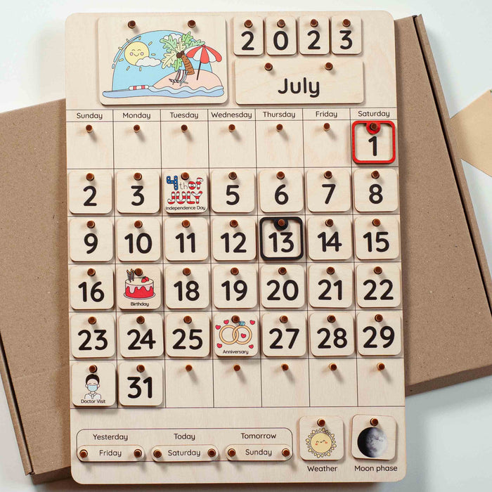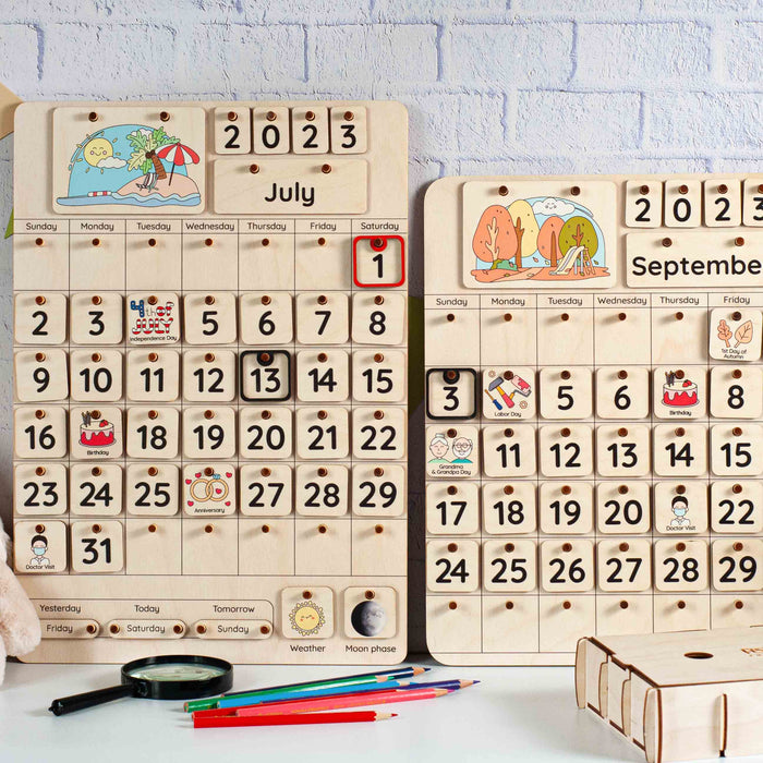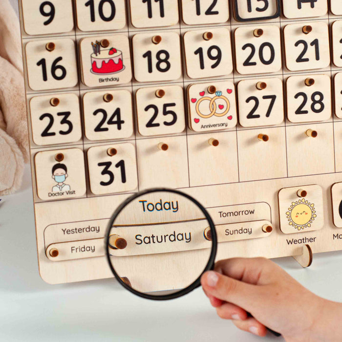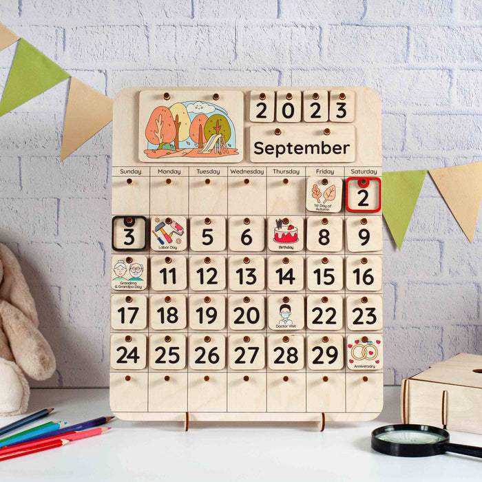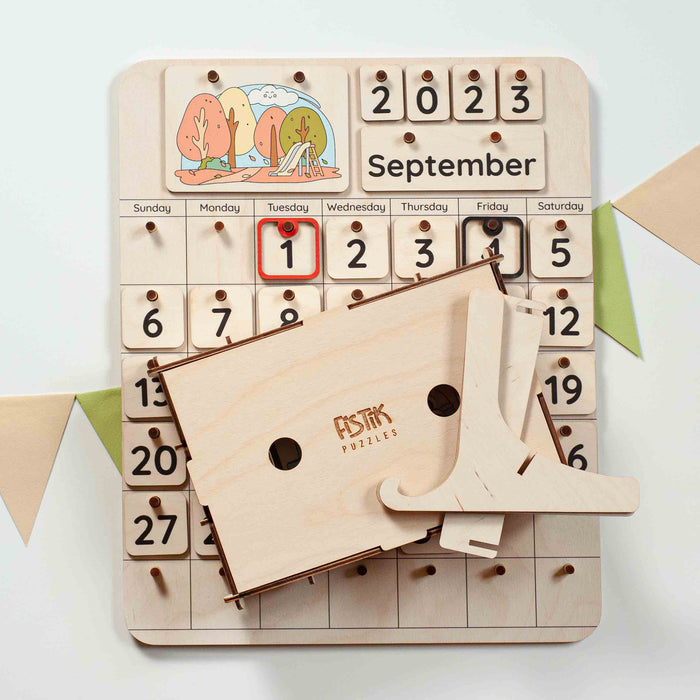 A handcrafted Christmas wooden calendar is a beautiful and useful tool for keeping track of time. But most importantly, this Montessori calendar can be a great help for your child in learning dates and numbers, days of the week, months of the year, and seasons. Introduce your little one to the concept of time, teach him how to use a calendar, show him his birthday and favorite holidays, and explain how to make a schedule. Learning complicated things is much easier through creative activities, so this calendar can be a great learning toy for your child.