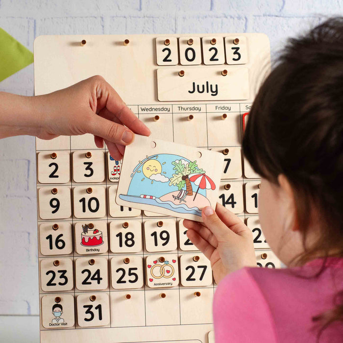 Also, you can add special holiday squares to this calendar, and turn it into an Advent calendar! Let your kid's count days before Christmas using this calendar, prepare small presents for them for each day, and make the waiting time special and exciting!