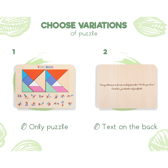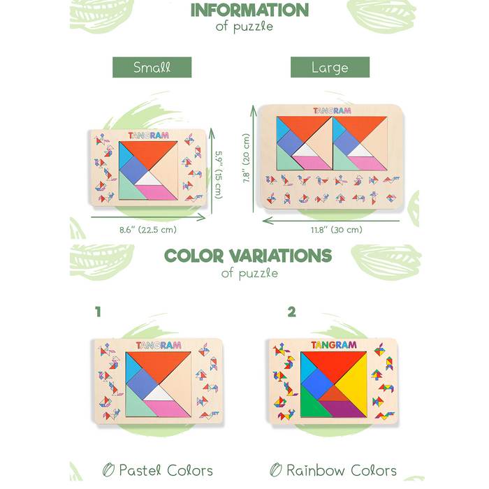 Crafted from high-quality, non-toxic birch plywoode, the Baby Tangram Puzzle is built to withstand endless hours of play while being gentle on the environment.Whether you're celebrating a birthday, a holiday, or simply want to surprise your little one with a new adventure, the Baby Tangram Puzzle makes for a thoughtful and exciting gift. Encourage their curiosity and watch their confidence soar as they conquer each new puzzle!