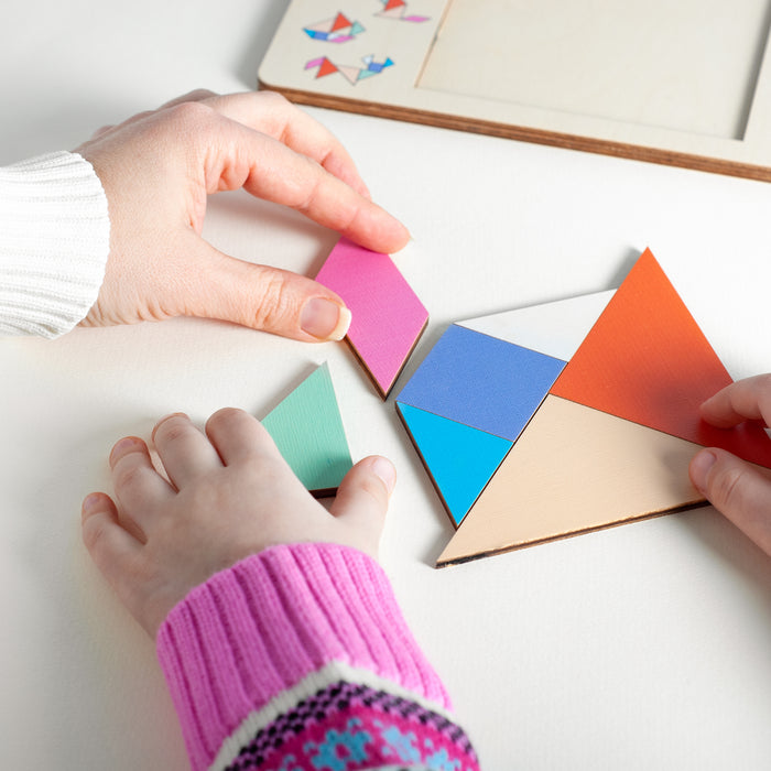 Watch as your baby discovers endless possibilities by arranging the vibrant tangram pieces into various shapes and figures. As your little one manipulates and maneuvers the puzzle pieces, they'll develop essential problem-solving and critical thinking skills. The puzzle's varying levels of difficulty grow with your child, ensuring endless entertainment and cognitive growth.