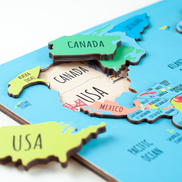 Studies have shown that kids retain information much more quickly if they have a visual aid so this wooden world map puzzle is the ideal educational toy for them to learn about the world around them and follows the Montessori principles. This is a geography lesson that is super fun!
